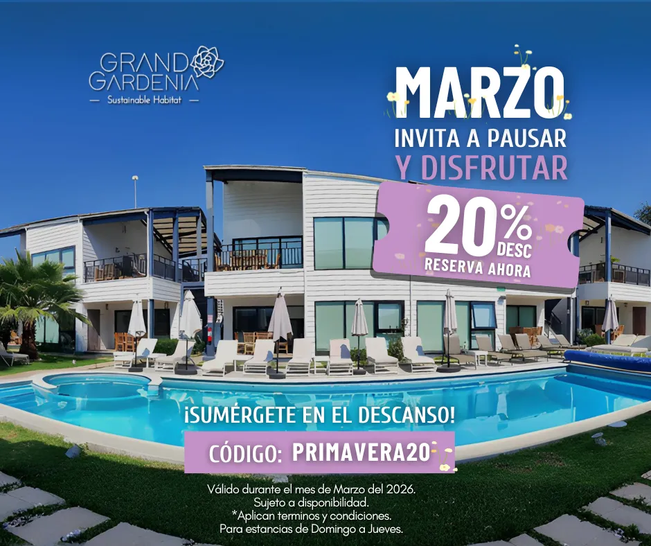 - Para estancias de domingo a jueves del 02 de marzo al 31 de marzo de 2026.